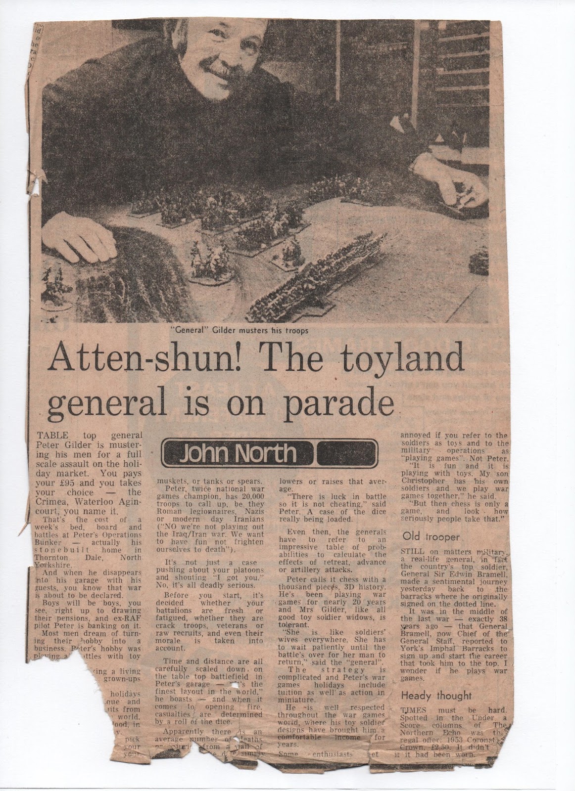 To coincide with Peter Gilder opening his Wargames Holiday Centre he was interviewed by John North who was a reporter for the Northern Echo. Unfortunately John North had a reporting style that viewed wargaming as a novelty. Strangely he still reports in the same way.
